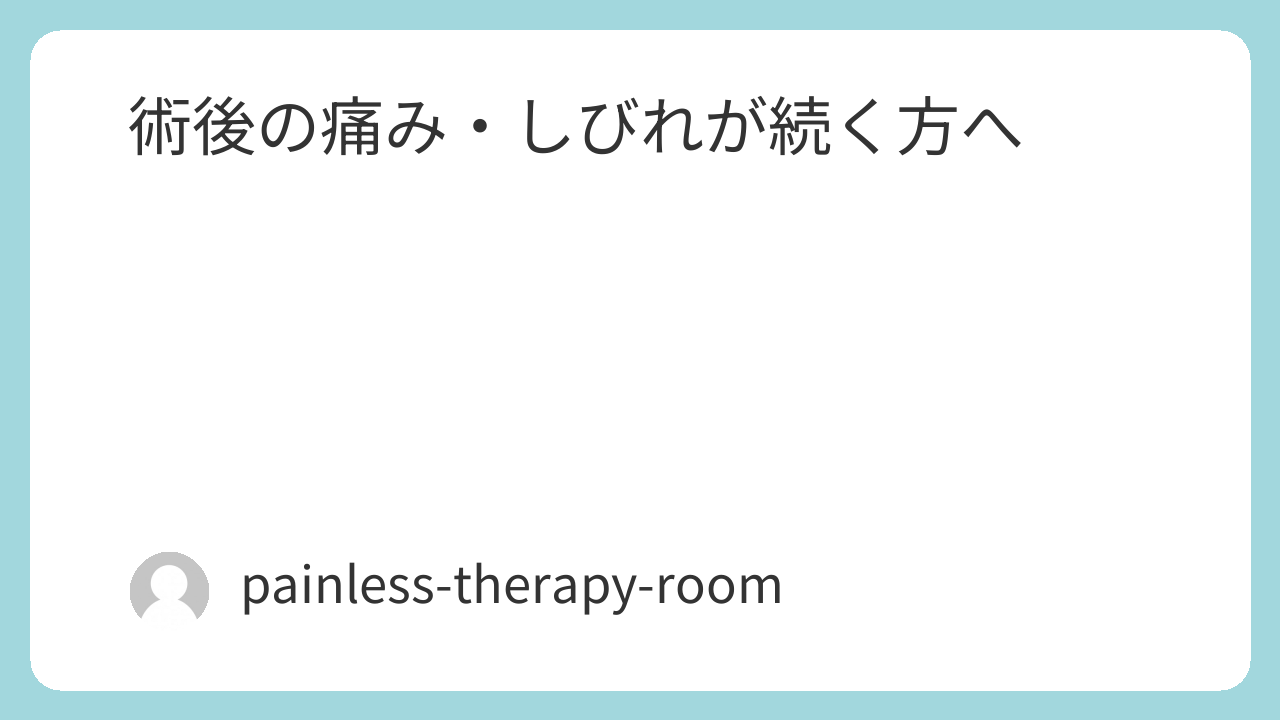 - ✔ 術後3か月以上たっても痛み・しびれが続く