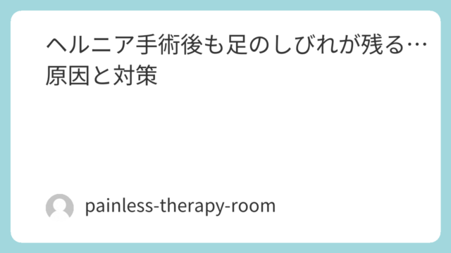 「ヘルニア手術は成功と言われたのに足のしびれが治らない…」そんな方へ。術後もしびれが残る原因と対策、改善の考え方をやさしく解説します。